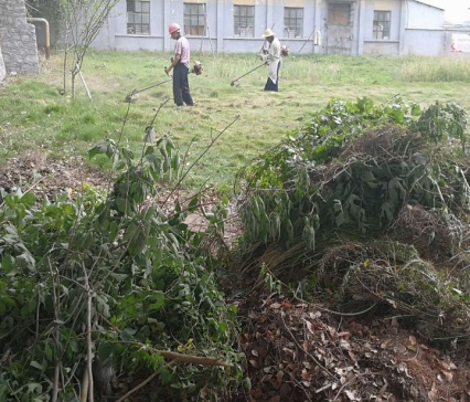 6月2日、3日、4日、8日中荊置業(yè)公司對所轄五個家屬區(qū)綠化帶、雜草、雜物、建筑垃圾進行全方位清理。清剪綠化帶100余米,除雜草3800余平方米,噴除草劑2000余平方米,清理建筑垃圾雜物8車,處理占樓道廢棄摩托車6輛。